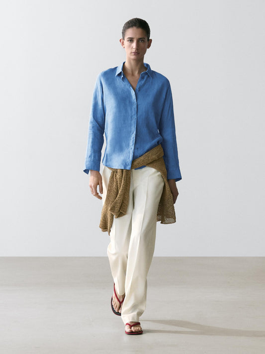 PANTALON FLUIDE EN LIN MÉTALLISÉ