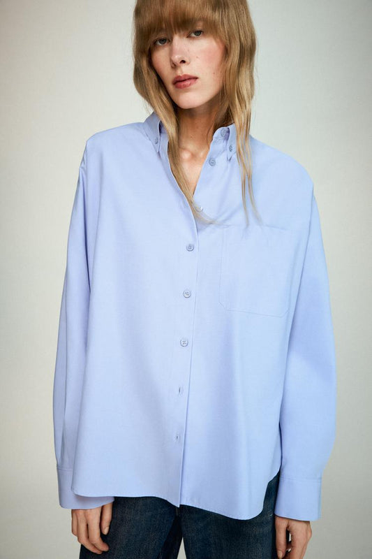 CHEMISE EN POPELINE À RAYURES ET PINCES
