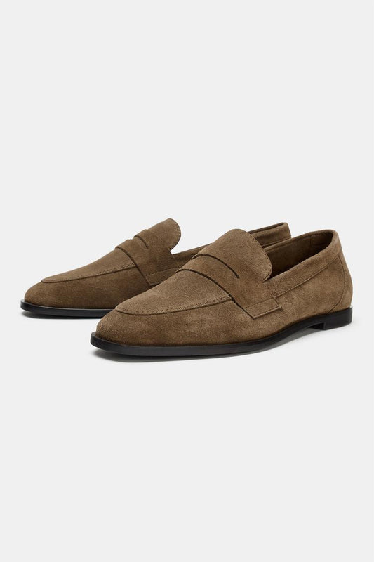 MOCASSINS PLATS EN CROÛTE DE CUIR