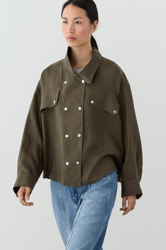 CHEMISE À BOUTONS-PRESSION 100 % LIN