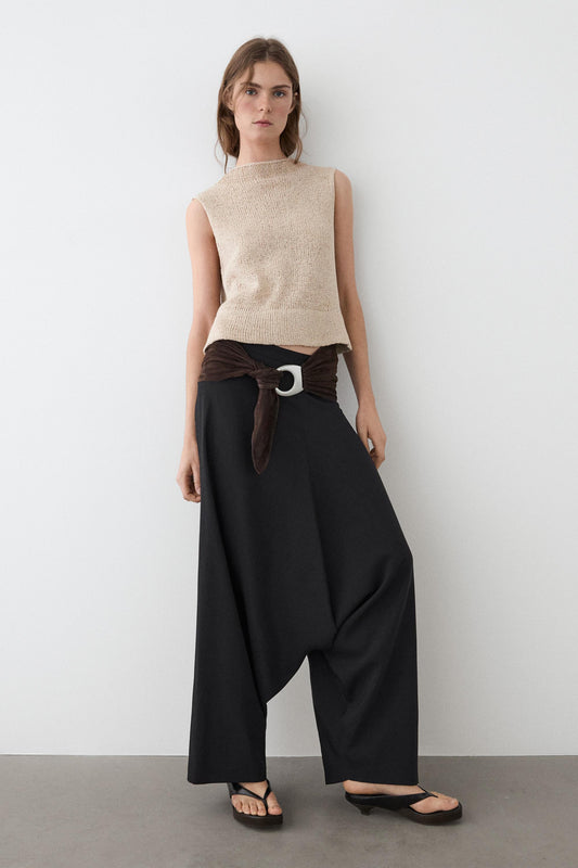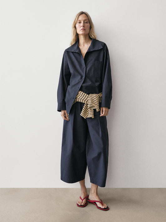 PANTALON LARGE EN COTON MÉLANGÉ