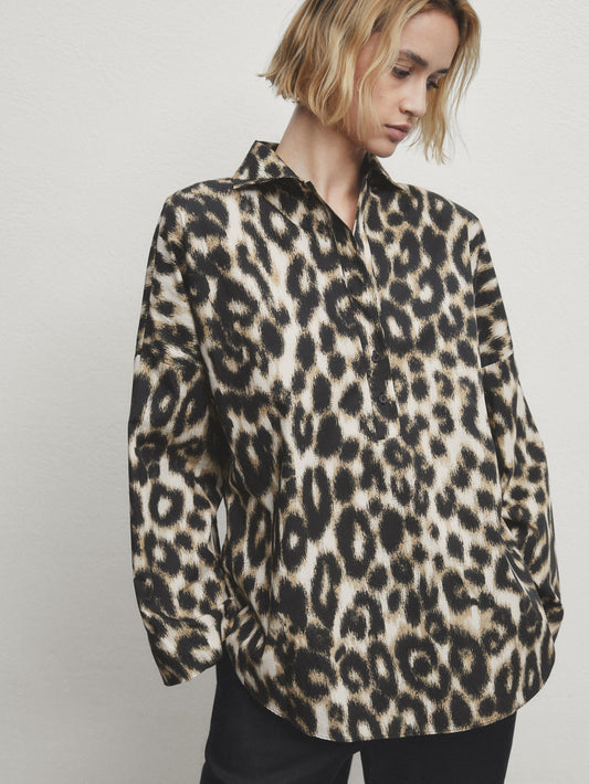 MASSIMO DUTTI CHEMISE À COL POLO ET IMPRIMÉ LÉOPARD