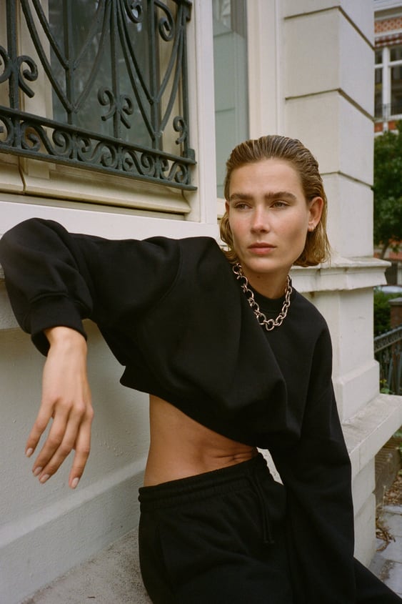 ENSEMBLE SWEAT VOLUME DENTELLE | PANTALON MOLLETON LARGE DENTELLE