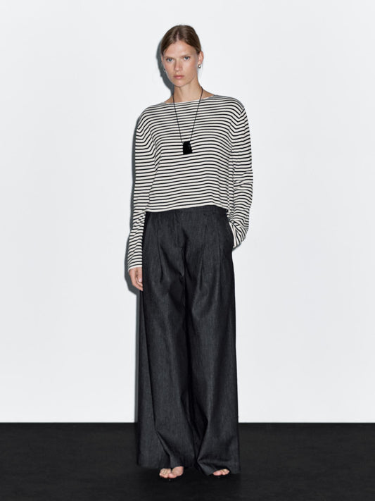 MASSIMO DUTTI PANTALON LARGE SANS TAILLE EN COTON