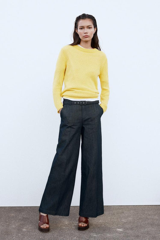 PANTALON EFFET DENIM WIDE LEG AVEC LIN