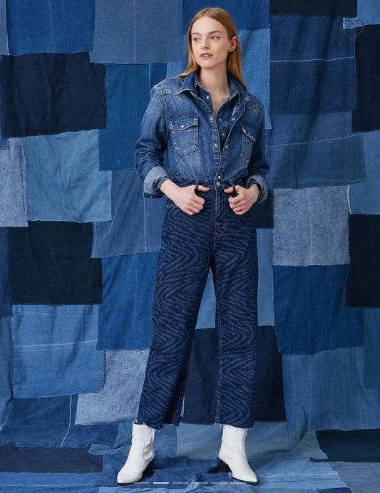 MANGO JEAN À JAMBES LARGES À MOTIFS