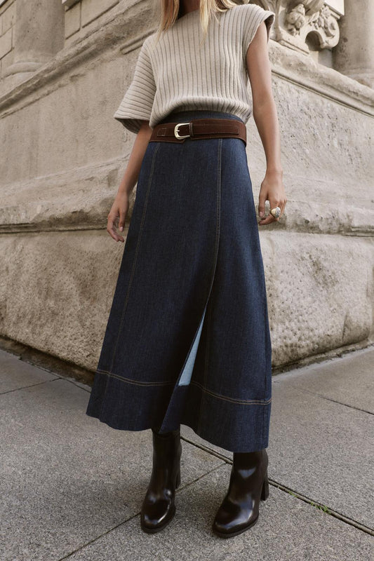 JUPE Z1975 MI-LONGUE EN JEAN SANS CEINTURE
