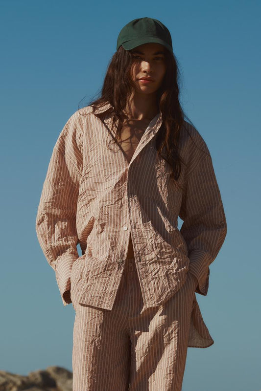 CHEMISE OVERSIZED À RAYURES EFFET PLISSÉ