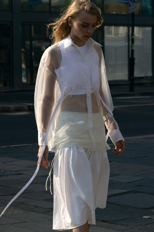 CHEMISE OVERSIZE EN POPELINE ET ORGANZA