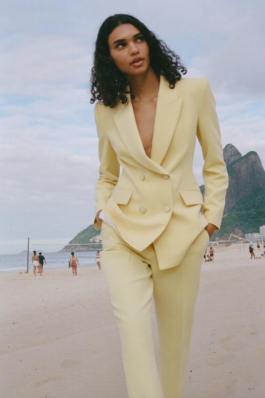 ENSEMBLE VESTE À BOUTONNAGE CROISÉ ET ÉPAULETTES | PANTALON 7/8 TAILLE HAUTE