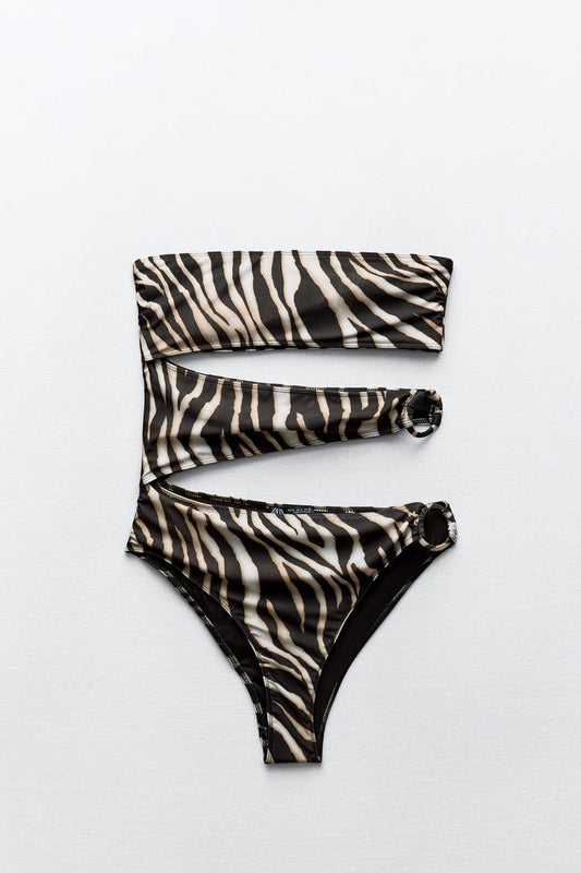 MAILLOT DE BAIN À DÉCOUPE AVEC IMPRIMÉ ANIMAL