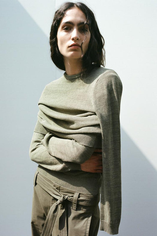 En venteLINEN BLEND ASYMMETRIC MIDI DRESS