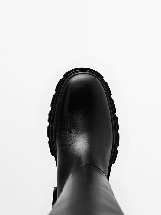 MASSIMO DUTTI BOTTES CUIR NOIRES SUPER TRACK