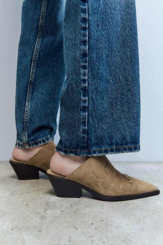 MULES À TALONS EN DAIM STYLE COW-bOY 🤠