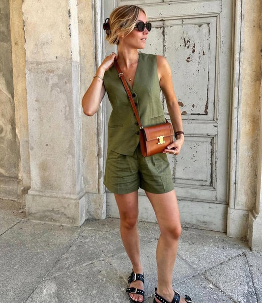 ENSEMBLE GILET SANS MANCHES Z1975 COURT EN DENIM | JEAN Z1975 BOOTCUT TAILLE HAUTE AVEC CEINTURE