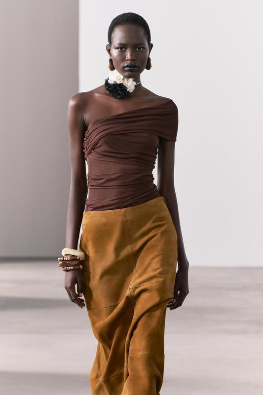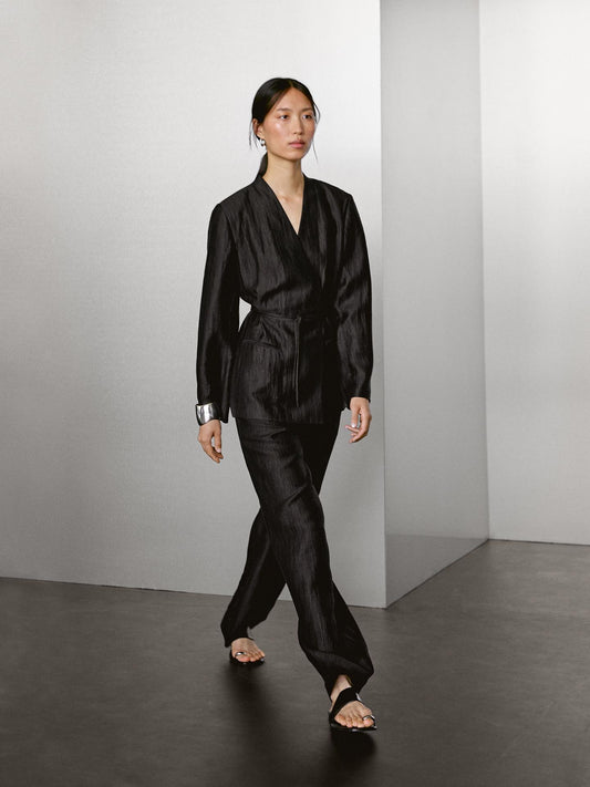 MASSIMO DUTTI PANTALON PALAZZO À PINCES EN LIN MÉLANGÉ