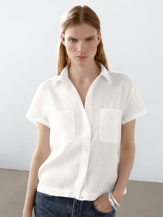 MASSIMO DUTTI CHEMISIER MANCHES COURTES 100 % LIN