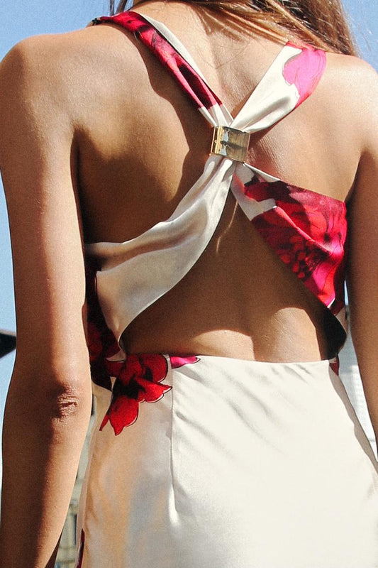 ROBE MI-LONGUE IMPRIMÉE EN SATIN