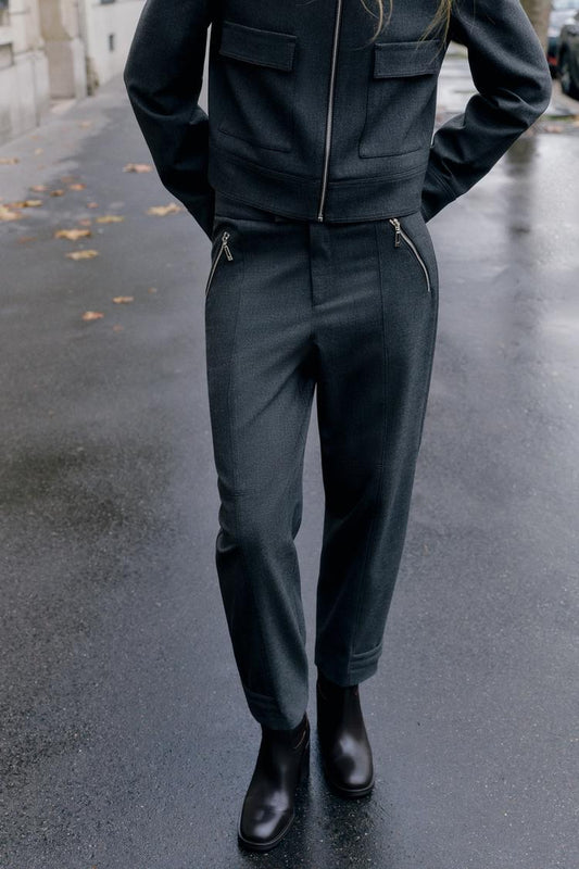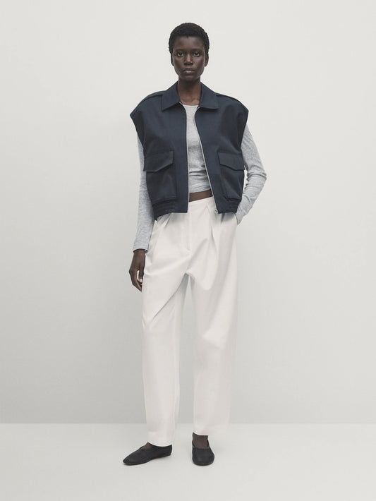 PANTALON BARRELL EN MÉLANGE DE COTON MASSIMO DUTTI
