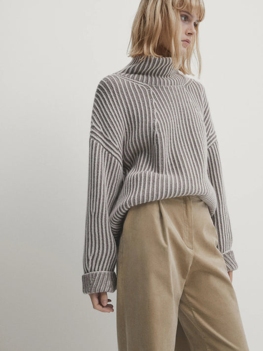 PANTALON DROIT EN MICROVELOURS CÔTELÉ À TAILLE ÉLASTIQUE MASSIMO DUTTI BEIGE