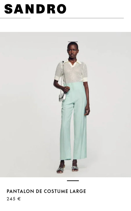 SANDRO PANTALON DE COSTUME LARGE VERT D'EAU