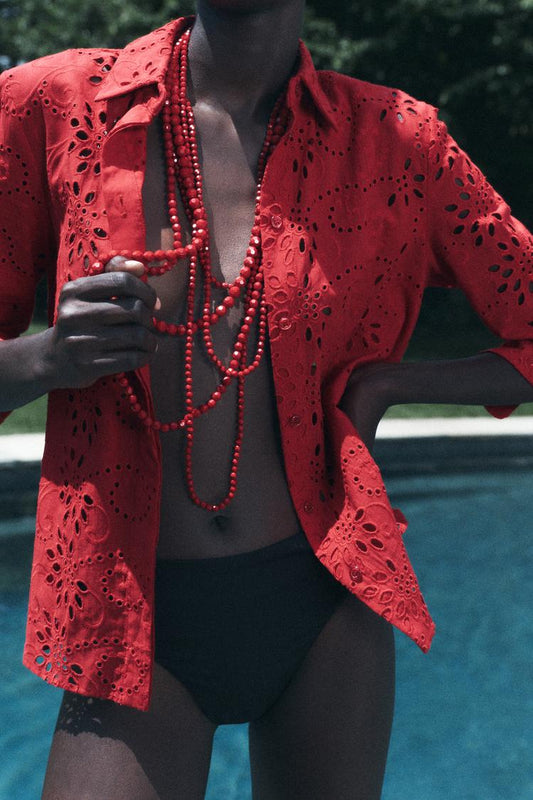 En venteCHEMISE EN POPELINE AVEC BRODERIE