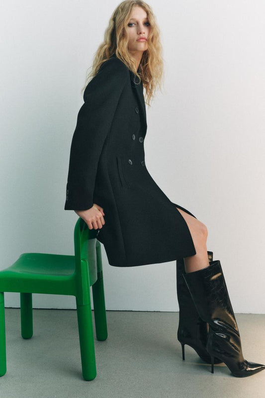 MANTEAU À BOUTONNAGE CROISÉ AVEC LAINE