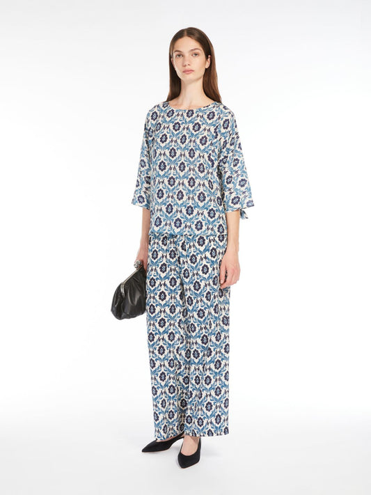 WEEKEND MAX MARA PANTALON CROPPED EN SOIE IMPRIMÉ AVIO