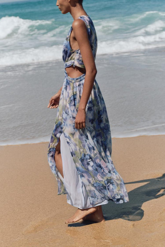 ROBE IMPRIMÉE AVEC FIL MÉTALLISÉ ET OUVERTURES