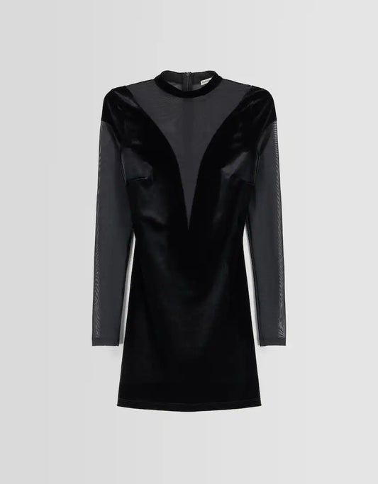 ROBE COURTE MANCHES LONGUES VELOURS ET TULLE
