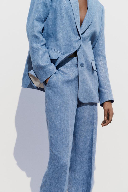 ENSEMBLE BLAZER | PANTALON DROIT EN TISSU BRILLANT