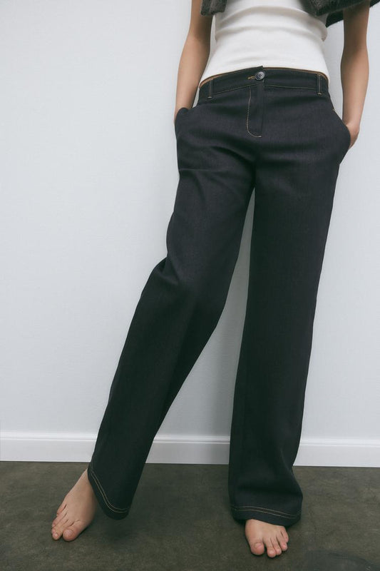 PANTALON BOOTCUT AVEC SURPIQÛRES EN MATIÈRES VARIÉES