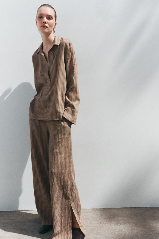 PANTALON LARGE À BOUTONS AVEC LIN
