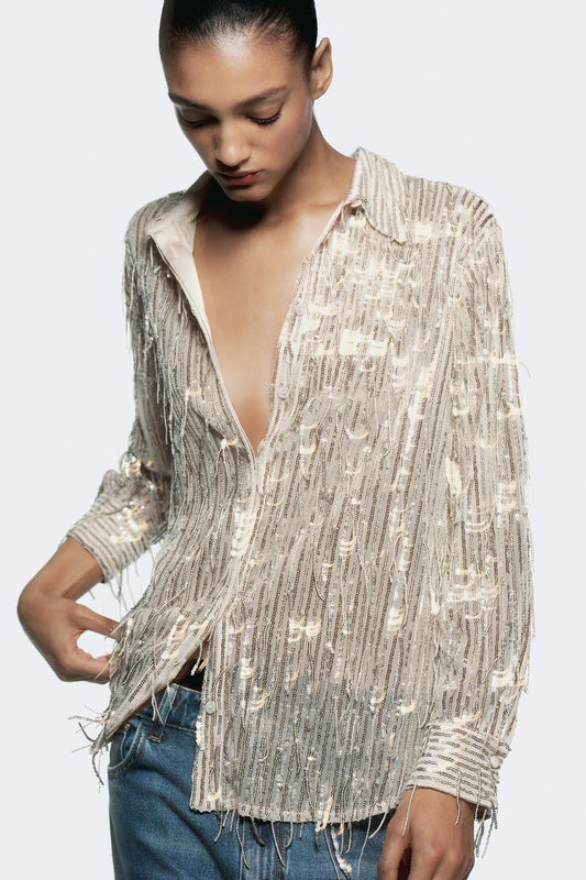 ÉpuiséCHEMISE À FRANGES ET SEQUINS