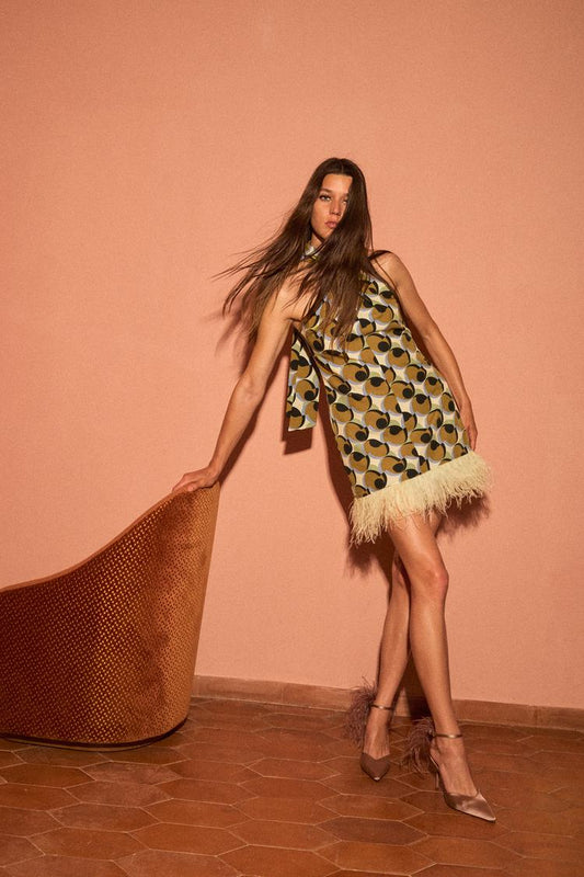 ROBE COURTE IMPRIMÉE GÉOMÉTRIQUE PLUMES