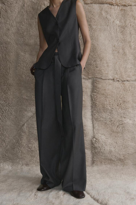 ENSEMBLE GILET | PANTALON LARGE EN CRÊPE