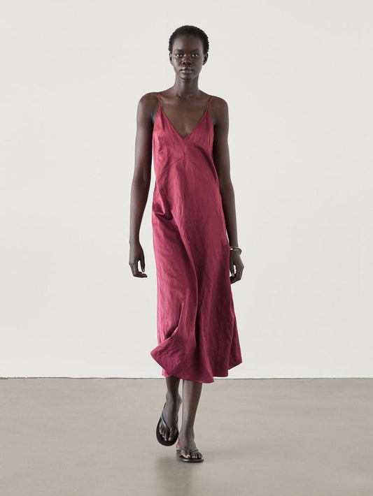 ÉpuiséROBE MIDI HALTER EN RAMIE