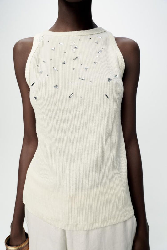 En venteT-SHIRT CÔTELÉ AVEC STRASS