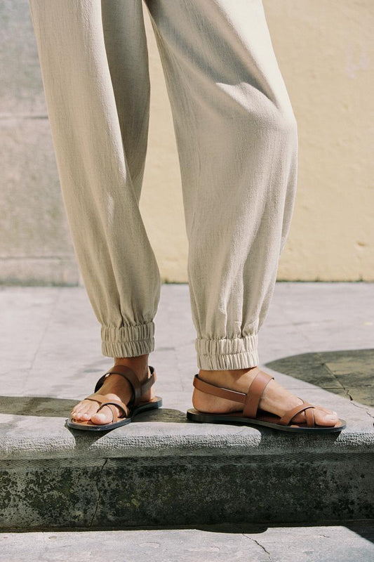 PANTALON DROIT AVEC LIN SURPIQÛRES CONTRASTE