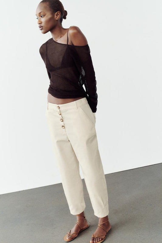 PANTALON COUPE CAROTTE AVEC ÉLASTIQUE À L'ARRIÈRE