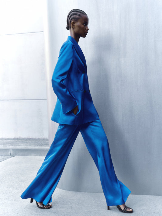 PANTALON DE COSTUME LARGE SATINÉ FENTES MASSIMO DUTTI