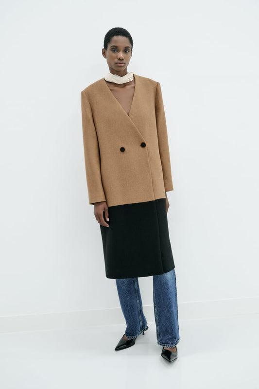 MANTEAU À BLOCS DE COULEUR AVEC LAINE