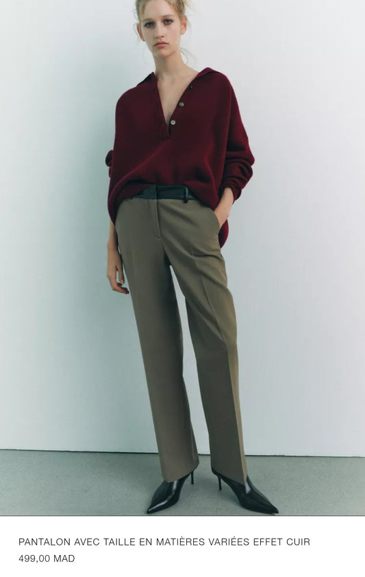 PANTALON AVEC TAILLE EN MATIÈRES VARIÉES EFFET CUIR