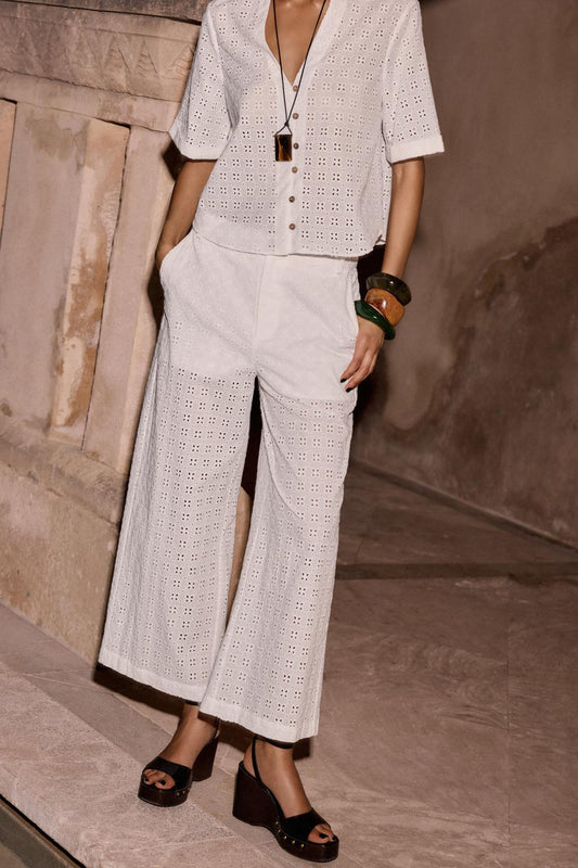 PANTALON JUPE-CULOTTE BRODERIES AJOURÉES