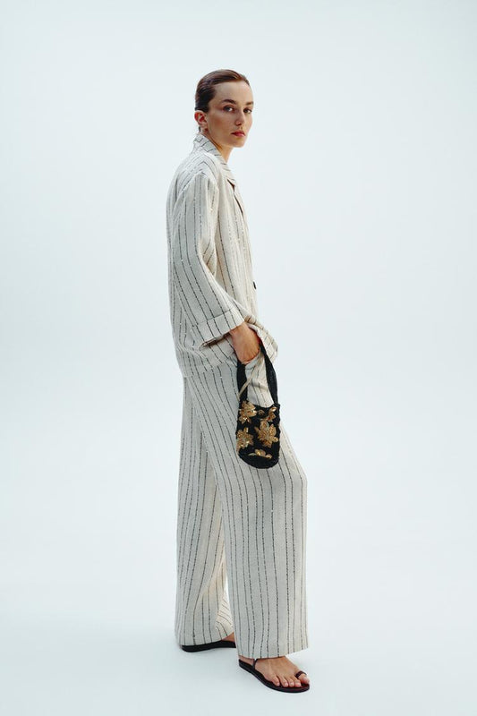 CHEMISE RAYURES MANCHES LARGES FIL MÉTALLISÉ