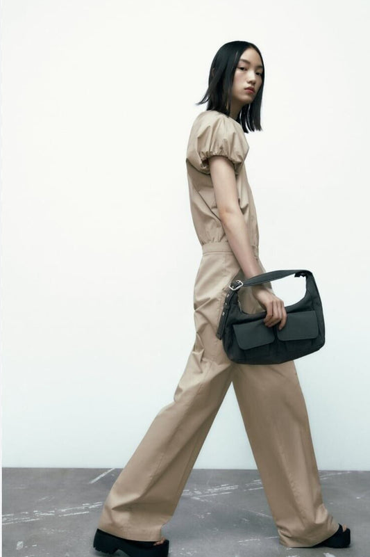 PANTALON TAILLE HAUTE À PINCES ET JAMBES LARGES EN CRÊPE