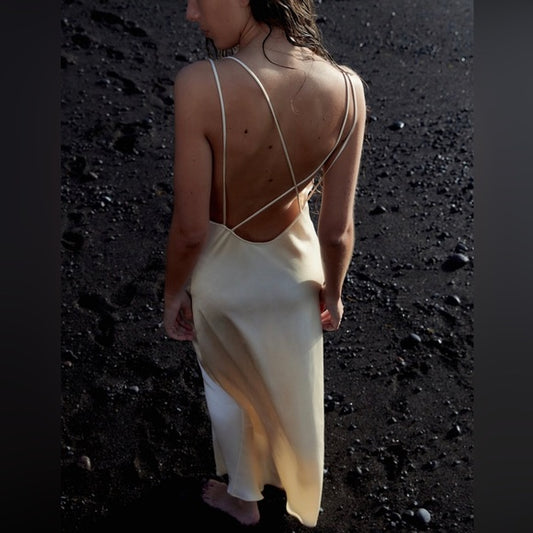 ÉpuiséSATIN SLIP DRESS SOFT GOLD
