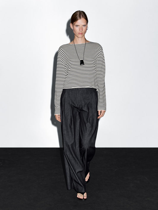 PANTALON LARGE VOLUME EN LIN MÉLANGÉ