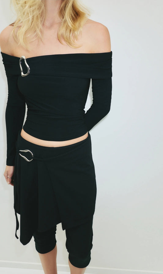 ENSEMBLE TOP DOUBLE MANCHES LONGUES | JUPE MI-LONGUE ASYMÉTRIQUE