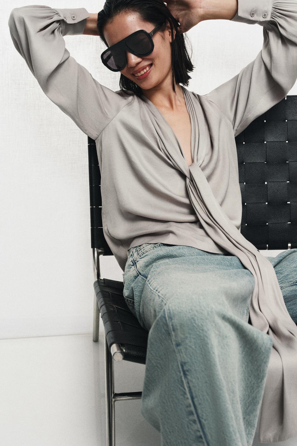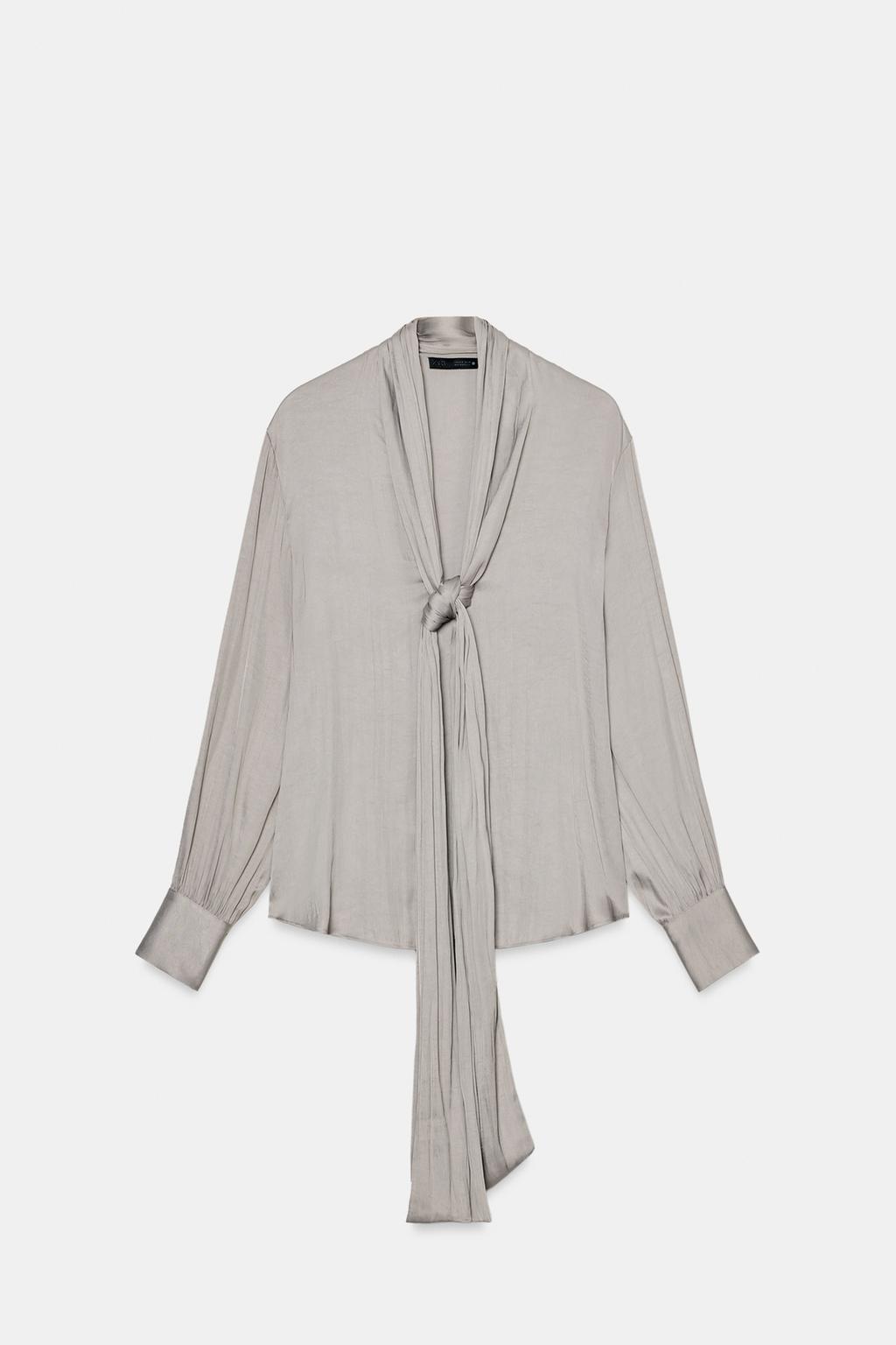 BLOUSE COL EN V AVEC NŒUD ZW COLLECTION